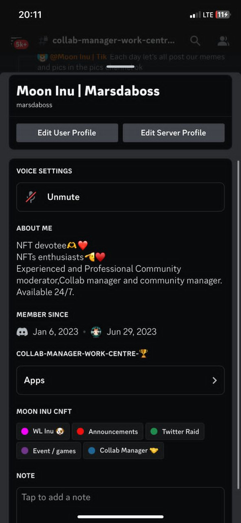 I'm a professional community mod and collabs manager based in a timezone of Gmt+1. I have worked with several brands in building their communities, boosting their social media presence, and developing their overall growth and succes in the NFTs ecosystem and web3.